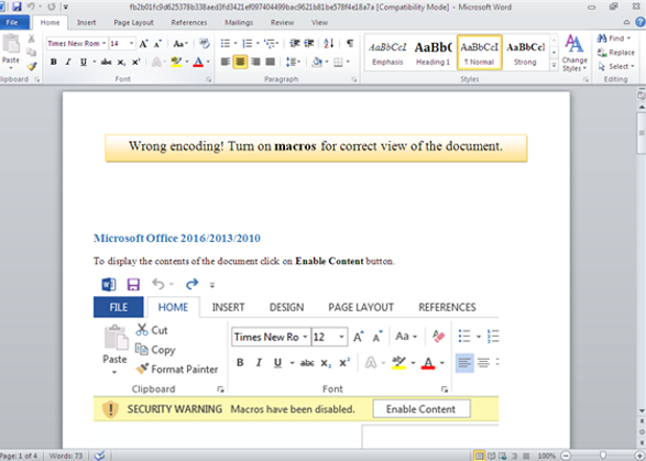 Odinaff的感染方式被认为是鱼叉式钓鱼攻击。已知的两种攻击方式为:包含恶意微软Office宏的附件,以及用密码保护的RAR文档附件。一旦恶意宏被激活、或者RAR文档被打开,Odinaff木马就会被植入。